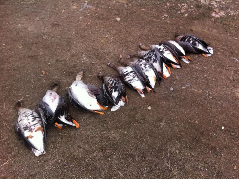 Тут как бы идея есть, так как нет воды и снежницы на полях, но есть изобретатели и генераторы идей на форуме....а...что если объединить идею форумчанина Юрk@ (положить светлый целлофан для имитации лужи) и идею Дяди Алика (с зеркальным скрадком), но вместо целлофана на землю кладем зеркала, с учетом ветра роем на краю яму и....только успевай собирать гусей. Они сверху видят нашу импровизированную лужу, заходят с подветренной стороны на посадку и спокойно всей стаей скользят до нашей
