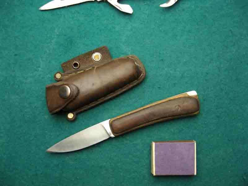 _ В середине, нож подаренный моему деду в 1975г. Складничёк сделанный на заводе в советские времена, сталь углеродка хромированная, накладки тексталит, на клинке дарственная надпись (( Отличному грибнику 1975г. )) Для охоты этот нож не пошел, хотя удобен в работе, но холодная и скользкая рукоять. А для грибов и рыбалки хорош. _В низу охотничий складничёк, купленный в 1996г моим отцом, переделанные накладки дерево и кожа. Сталь 65 нержавейка, посредственная на сегодня, тем не менее этим ножом шкурились и лоси и кабаны, думаю много авторитетных свидетелей охотников найдется, подтвердить мои слова. Нож с фиксатором на пятке, не имея выступов_верткий в руке удобный в работе. Ножны 1996г., сшиты для ношения на пояснице, Очень удобно особенно в машине. НО для того чтобы за многолет любимый нож сохранился, ему обязательно нужен помощник «всякий». _На вершине коллекции фото ножа, в народе прозванный «всякий». Стоит он не много, им можно открывать консервы, ковырять, потерять, и самое главное не обидеть друга, на просьбу - Дай нож______НА!! Нож без всяких ножен болтается по карманам, бардачкам машины и тд, ИМХО на охоте, особенно в поездке, должно быть два ножа. |
