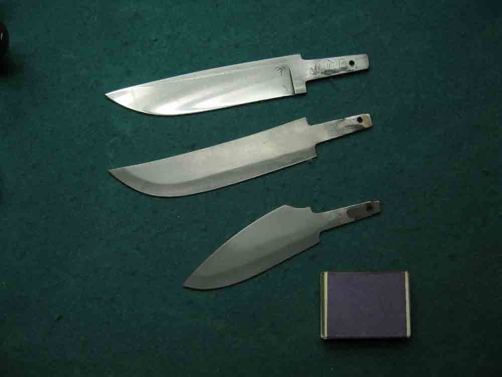 Материал клинков не всегда, панацея. Вот с лева я собрал себе шкуродер, клинок компазит, Санька Брусланова, закалка 64 НRC, Три клина от И.Пампухи, верхний булат литой с добавлением 95Х18, а