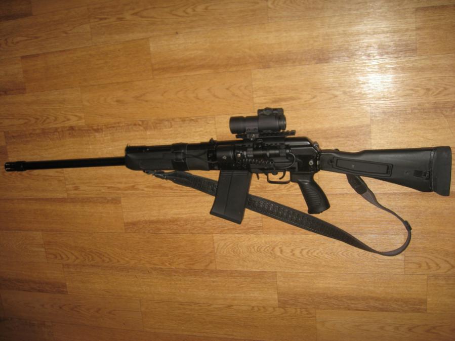 У меня самодельный затыльник. Хотел от 030-ой Сайги, но не нашёл. Сделал сам. Удлинил на 4,5 см. Главное условие изготовления было, чтобы не демонтировалось - постоянное. Ессно не мешало складыванию приклада. Технология - из двух слоёв резины. Внутри жёсткая, снаружи мягче. Полая, чтобы вес поменьше. Но пенал пришлось удалить за ненадобностью. Кнопку нарастил западлицо. Не мешает, но в то же время открывается легко...