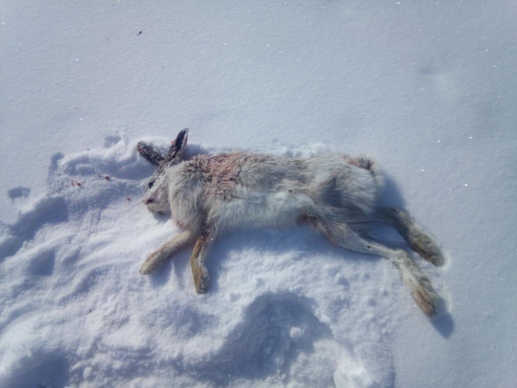 ТОже сегодня закрылся по зайцам. Хотя выходил что бы попытать удачу на лису. Обходил все места где постоянно вижу куропаток и много лисьего следа. Курей видел и сегодня , но вот с лисой не встречался. Заряжен был 00 полумагнум 5 летней выдержки. Зайцы были второстепенны. Но когда ты их не ищешь , они сами как специально попадаются. Первого зайца спугнул просто идя на его лёжку по открытому месту. Вскочил метров за 70-80 и в лесок галопом. Я кажется его в этих местах раз третий поднимаю. А вот добытый заяц сам нарвался . Я пересекаю жировку и вижу выходной след за бугорок. Поднимаюсь на бугор и заяц выбегает передо мной в 10 метах и останавливается. 1 секунда и выстрел прямо в голову. Как то всё рефлекторно получилось. Теперь только остаётся несколько раз прогуляться только на лису , не обращая внимания на зайцев. Сезон был просто замечательный. Глубокий снег , морозы и сильные оттепели , наст как асфальт. Всё было. Зима была самая настоящая. Спасибо ей за это. Будем ждать следующую.