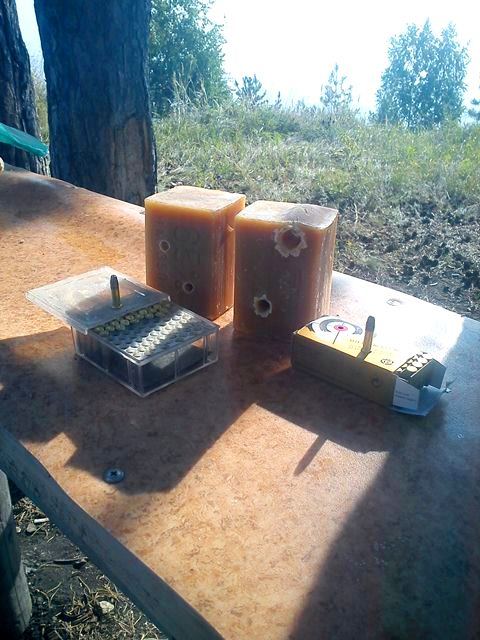 Небольшое пояснение: "Олимп - Э" - патрон, пуля которого, с надрезанным крест-накрест носиком (такой с завода), а Лапуа - обычные, целевые.