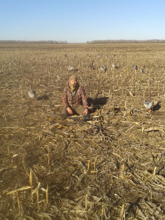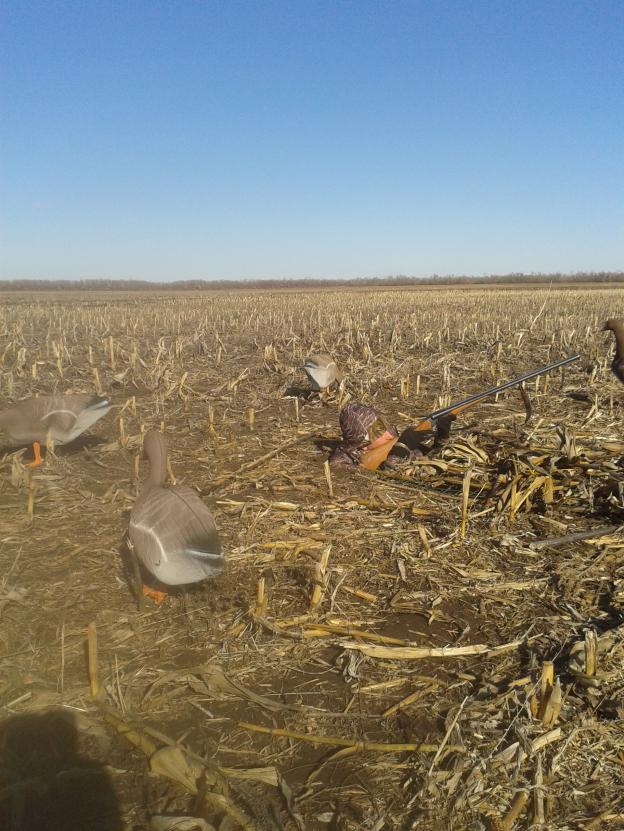 Ну что ж, напишу и я небольшой отчётик по открытию. Ездить искать гусика начали ещё за неделю, нашли, много… Приехали в пятницу, разбили лагерь, для тех кто хотел поохотить утку - нашли озерцо, которое уже вскрылось и небольшие разливы, бросили чучела определили места где спрятаться можно. А сами смотрим где над полями идет основной пролет. Определили где коридор и в ночь уехали копать. Нашли в темноте котел, ор гусинный стоит аж в ушах закладывает. Не доезжая до предполагаемого котла где то 700 – 800 м, приняли окапываться на перепаханном поле, как раз на трассе гуся. Ну кто копал тот поймет, какая это нелегкая задача, по ночи месить чернозем. Нас было трое, выкопали 3 окопа, как смогли замаскировали землю. Выставили чучела. Все подготовили, поехали в лагерь. Поспали 1,5 часа и в путь. Так получилось что доехал до места я один, мой напарник уехал дальше в посадку, причины не важны, важно следствие… Гуся было море, тыщи и тыщи, направление мы угадали и место тоже, шли и высоко и низко, ноооооо не долетая 200 – 300 м уходили в высь…. Посмотрев со стороны стало понятно что пугает… маскировка, с большой буквы М была никакая, кучи черной земли, все вокруг вытоптано, не закрытые 2 свободных окопа, короче говоря утрянка была потеряна…. Вернувшись в лагерь, немного смазав разочарование, обсудив недочеты, приняли решение потратить больше времени и качественно подойти к маскировке. Поехав на место ночной «стройки», и хорошенько осмотревшись, в километре нашли поле скошенной кукурузы и подсолнуха. Начали копать, взяли мешки и вывозили землю, долго, скрупулезно, но мы это сделали. Подготовили из сетки накидки, замаскировали их скошенными стеблями кукурузы. Расставили чучела по специальной методе, которую где-то вычитали. Вернулись в лагерь где-то часа в 4 дня, быстро поели, перебрали патроны и в бой, на подъезде к нашим окопам из далека уже было видно что ОН там, стайки кружились, кто то присаживался…. Ляпотаааа. Сели и начали манить, но гуся на вечерке было очень мало по сравнению с тем что творилось утром. Но он был, первые же налеты показали что с маскировкой все гуд, гусь подвоха не чувствует и налетает отлично. За вечерку взяли одного и было много досадных промахов, в след раз нужно ставить в стволы цилиндры и брать патроны без контейнера, на коротке самое то будет, ну и конечно практика и тренировка стрельбы.