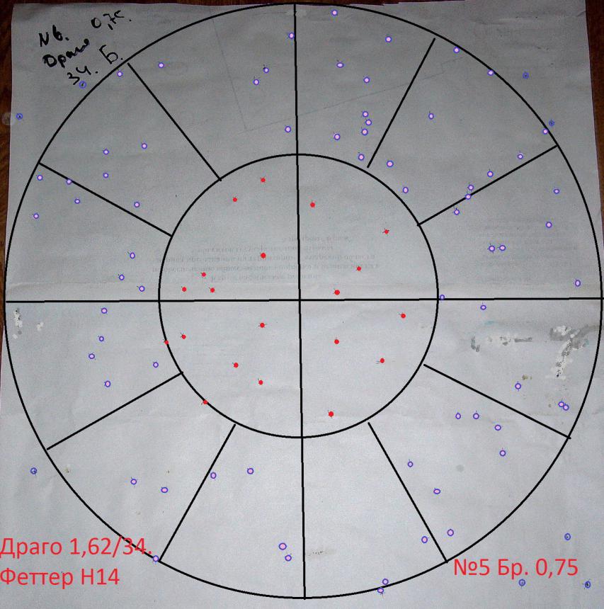 Сам знаешь, навески производились "баночные", так сказать первичные, от чего плясать. Поэтому как бы первый результат. Жаль что не забрали мишеньки с твоего Бекаса, для сравнения. Ну да ладно, в следующий раз...)) И так: 1. Гильза Фиокки, сх-2000, Драго 1,62г., П/К Феттер Н14, дробь №5 34г., звезда, подкрутка Гаеп №4. 2. Гильза Шеддит\ Феттер\РС (низкий донный пыж) сх-2000, Драго 1,58г., Биор от Феттер Н18, дробь №5, 32г., звезда, подкрутка Гаеп №4. Сборка ровная, амор. на П/К и Биоре, не передавлены. |