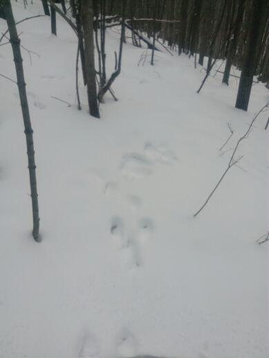 Лыжи пора брать с собой, снега бывает и по, вообщем по то самое. Думаю зая по такому снегу бегать не хочет. |