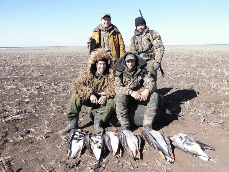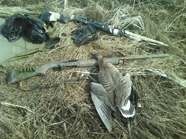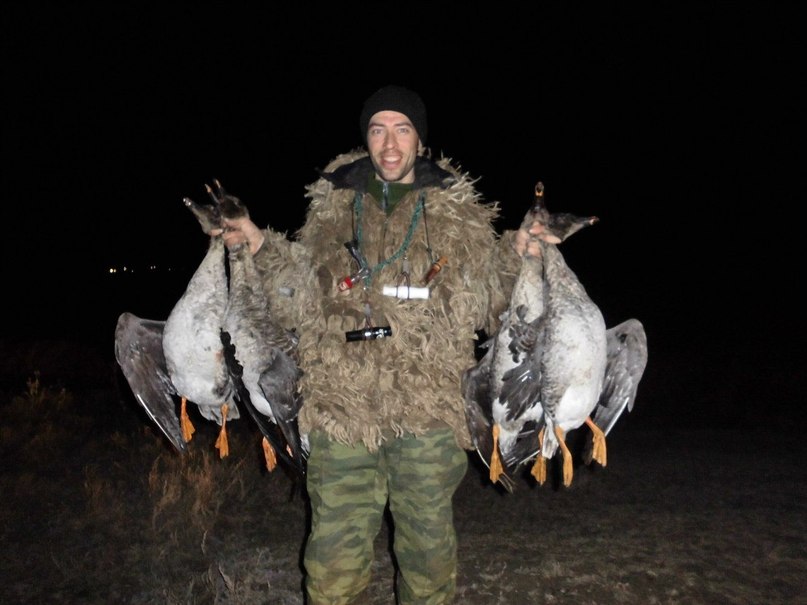 И так, вот и я созрел для отчета "ГУСЬ 2015". Охота проходила в Саратовской губернии с 4 по 13 апреля. Закончив рабочий день 3.04., загрузив машину я поехал за товарищем в Пестравку, двое из банды уже уехали в поля на разведку. Забрав товарища из Пестравки рванули в Перелюб, до которого так и не доехали, застряв в полях, дорога длиною 200 км растянулась на всю ночь. 3 часа ждали подкрепление в виде уаза, который и выдернул мою ниву. Приехав на базу, перегрузили вещи в уаз и рванули на охоту, на утрянку успели, итог я взял белолоба. Гусь шел активно и много. На следующий день 5.04. весь день шел дождь со снегом, мокрые, голодные, мы весь световой день толкали уаз. 6.04. сушились и отсыпались. Потом все дни были похожи один на другой, с утра на поле кукурузы с просом, вечером на небольшой луже. Команда постоянно менялась, кто-то уезжал, кто-то приезжал, из 8 человек нашей банды гусятников, постоянно охотилось не более 4-5 человек. В итоге на 8 человек было добыто за 10 дней охоты 25 гусей. Я взял 11. Что порадовало гуменник преобладал. Стреляли тройкой, я 36 грамм, парни 32 грамма. Пролет был отличным, на данный момент это лучший сезон охоты на гуся у меня. Если что запамятовал, комрады поправят.