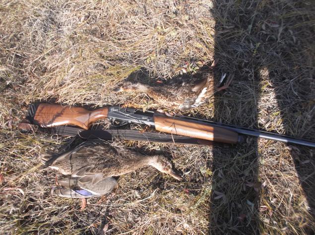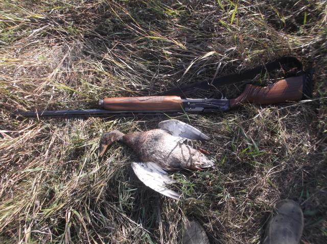 Сегодня выехал в 8-00. Сначала поднял 3 крякашей. Но добыть смог только одну утку со второго выстрела. А в другом месте заметил одинокого крякаша плавающего по середине болотца. Подкрался метров на 25-30 . И тут утя заметив меня взлетает. Отстрелял 4 патрона, так и не понял каким попал.Но утка пошла на посадку и села в метре от границы с густым камышом . Бегом по берегу она ломанулась к зарослям , где была остановлена пятым выстрелом. Расход боеприпасов конечно жуткий , но результат радует. И опять попадания по головам, лишь у второй утки ещё одна дробина в грудину.