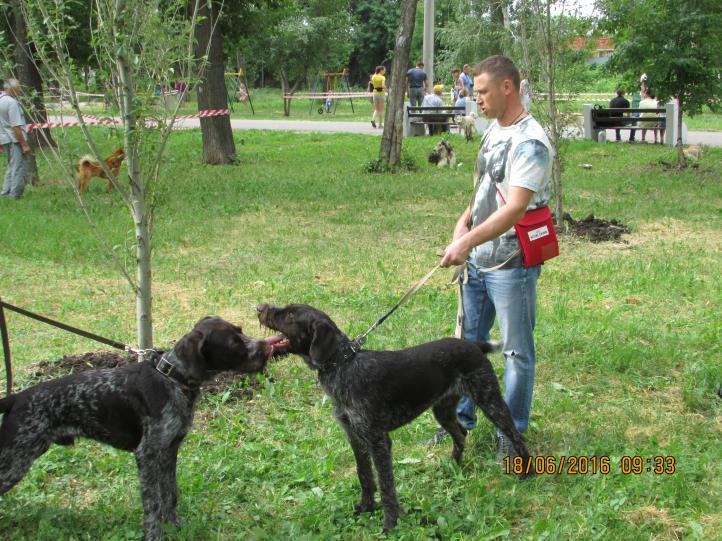 Был на выставке, первый раз выставлял молодого Курцхаара в младшей возрасной группе. Все прошло чудесно, огромное спасибо организаторам. Единственное огорчила, когда оценивали моего кобеля, сделали замечание по маленькому росту в холке. На ринге были три собаки и по сравнению с ними он выглядел мелким. Я попросил эксперта замерить рос. Эксперт достал самодельный измеритель, замерили и получили рост 61 см, при норме 62-66 см. Дома я взял металлическую гостированую линейку и уголок и провел заново измерение в той точке где мерили на выставке у меня получилось 63,6 см. На мой взгляд, у экспертов должно быть профессиональное оборудование чтобы не было разночтение в измерениях.