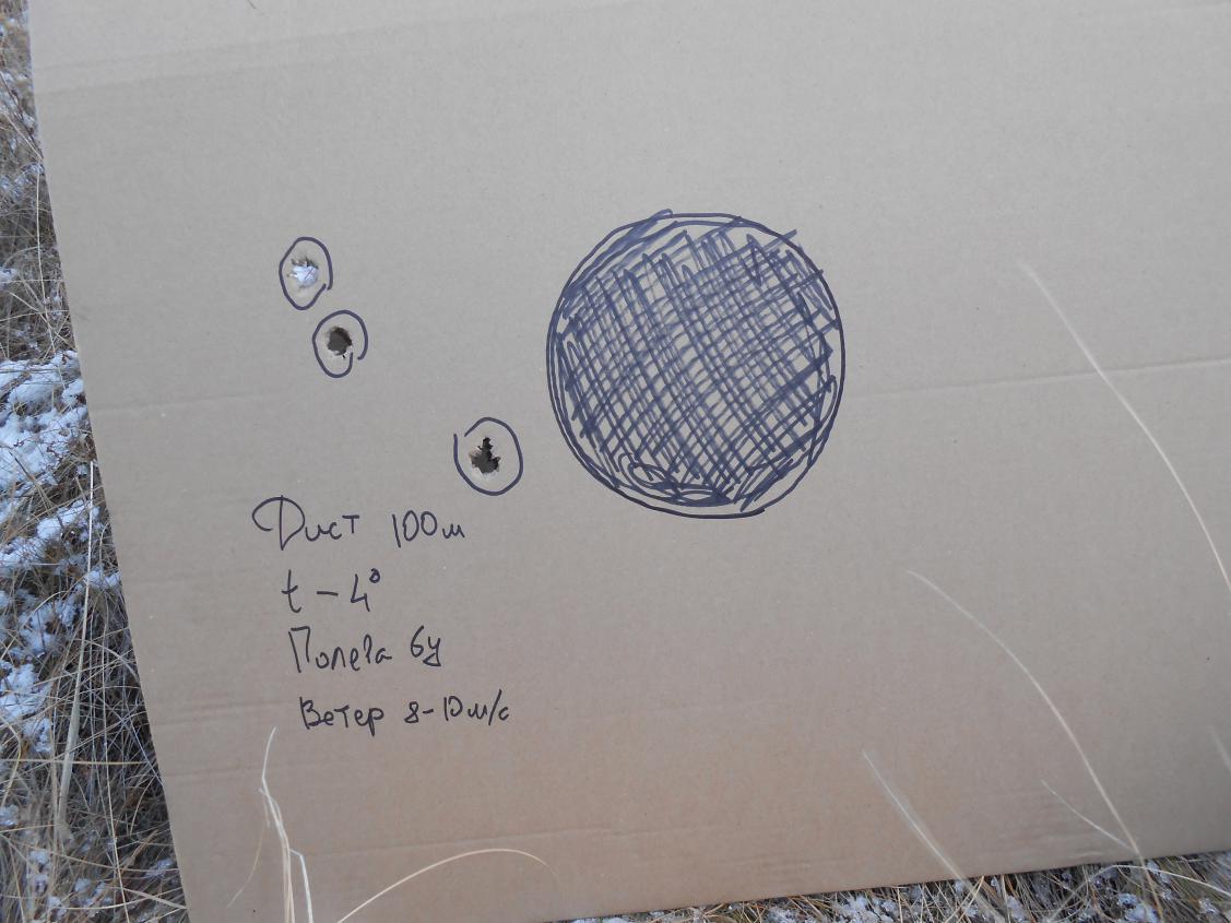 Серия из 3х. МР-155. Без всяких оптических прицелов. Стрелял немного в гору(( не было больше места. И ветер очень сильный порывистый. Диаметр круга 15 см. дист. 100м. Вот что получилось!