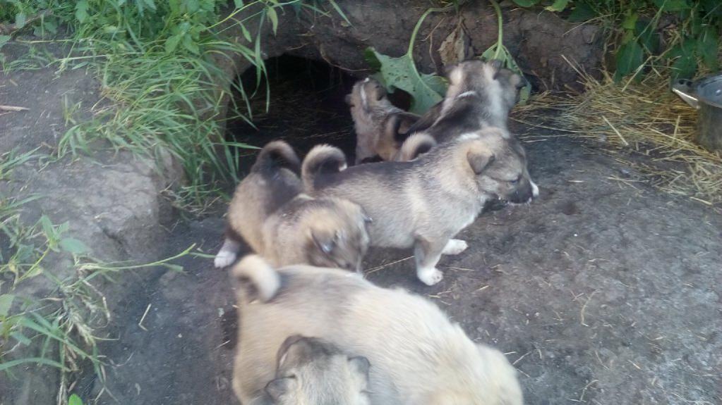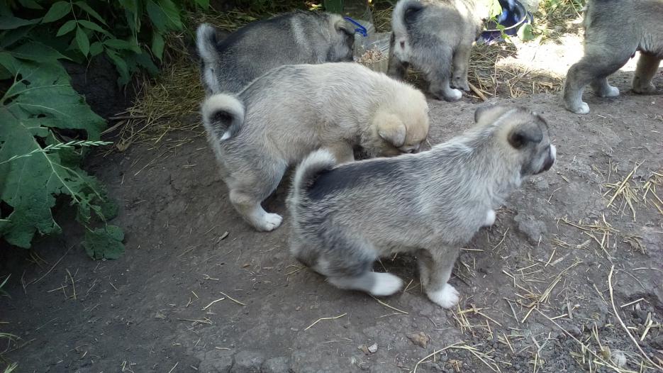 Едим сами, щенки очень активные... рычат, друг друга покусывают и лают...