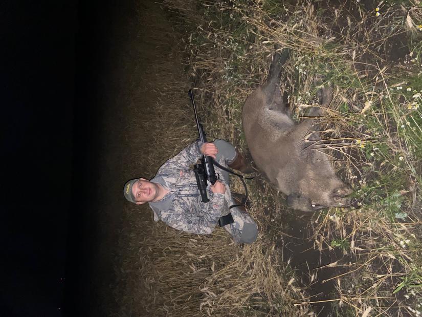 Охотники как и рыбаки народ суеверный… Знаешь, приметы там разные – «увидел зайца навстречу, можно собираться домой…», «через ружье не перешагивать», «встреча охотника без добычи и т.д.». Последних несколько выездов в угодия соседнего региона, где известна каждая кочка, не принесли желаемого результата. Да, вероятно свои коррективы внесла АЧС (и она есть, кто бы что не говорил), есть и прессинг угодий со стороны охотников и миграции, но вдруг, после добычи первой пары кабанов вначале сезона 2021г. удача вдруг отвернулась от нас… Сглазили? Может другая причина? Или же надумано это все? Все причины в самом охотнике? Я считаю, что Да, в охотнике (ну не добыть кабана сидючи дома)… Ну кто виноват в подранке на прошлой неделе? Или кто виноват в том, что заблудились в лесу? Кто виноват, что «подшумел» кабана, при выходе его на поле или вышку? Виноват ОХОТНИК. Но по совету старого рыбака пять рублей на пенек в лесу вчера все таки положил, со словами «Дух леса, это тебе, не серчай»… Следов после позавчерашнего дождичка вагон, но кабаньих единицы… Заслуга почти вся Ванина (как обычно), первого ждали-ждали, фырча ушел… На втором поле обнаружили кабана, но луна на столько яркая, что первые два шага испугали зверя, а секач был очень хорош. Третье поле, которое уже не давало надежд, принесло добычу… В самом углу молодой секач кушал зрелую пшеницу, игнорируя все поверья, что она колется и он не может ее есть - колется…. Дистанция 60 метров, видно не очень, поэтому выстрел чуть выше лопатки – лег на месте. Патрон PPU 11 гр. |