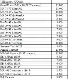 Будьте добры, актуальный список комиссионного гладкоствольного оружия с ценами на сегодняшний день!Спасибо!