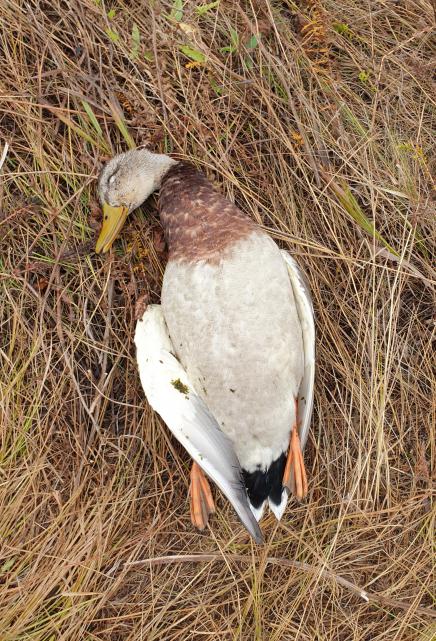 Утрянка была вялой, но одного селезня всё же удалось заманить, откликнулся на манок, летел радостно жвакая. Почти полностью перелинявший, только голова не окрасилась ещё