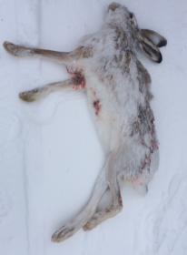 До плохой погоды успели двух поднять, но они ушли.Следы кстати были. Попутно увидели ещё два следа вышедших из посадки. Принимаем решение перекрывать -ту посадку в которую следы ушли. В итоге бегу через поле-ветерок крепчает-начало метели. Перекрываю-жду батя гонит-тут вижу уши зайца-жду и взял. Проходит минута я неторопясь заряжаю-второй бежит и сел от меня метров 60 за деревом и сидит профессор! Я не шевелюсь, но гон приближается и он зараза в поле но выстрелить успел-подранок. Как потом я за ним лазил и в овраг и непроходимую чащобу снега то выше пояса!, но все было рассчитано верно батя добрал! Пурга причём была уже хорошая. |