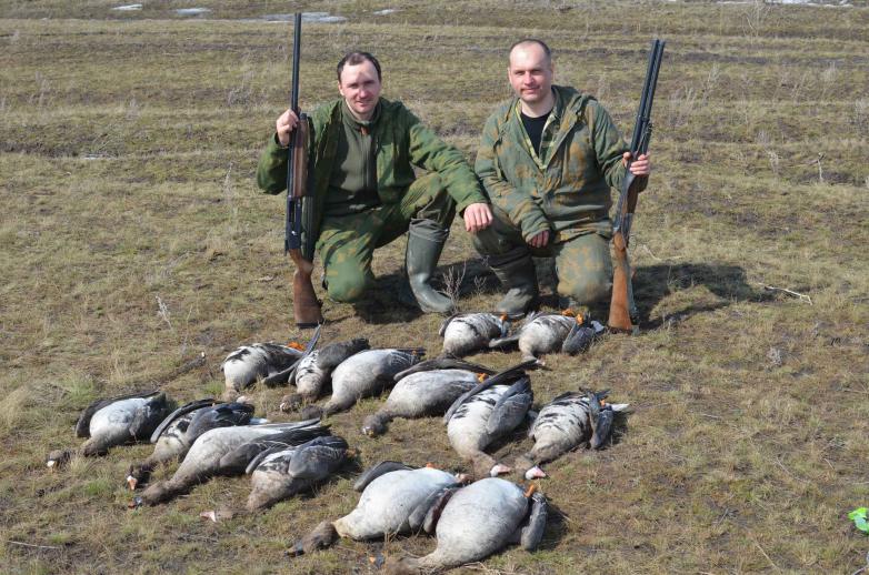 Были в выходные в Перелюбском районе, Саратовской области., Первый опыт оказался удачным! Гуся было много, охотились на скошенном кукурузном поле, маскировались в волках, все добытые гуси были при утренних налётах с 5:00-11:00. |