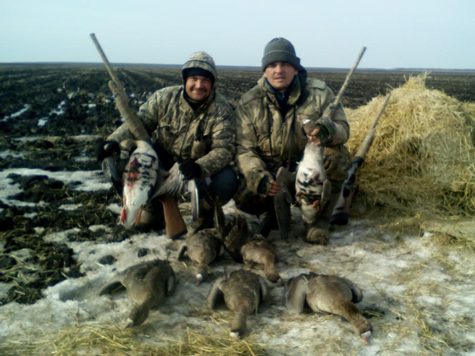 От охотились в Безенчукском районе. Охотников съехалось по моему со всей области(не знаю, слух что гуся море или путевки по 1 000 рублей) на каждом съезде в поля в каждой посадке по не скольку машин. И вот в пятницу вечером на кануне открытия поперли эшелоны гусей (с Волги на Хворостянку) да прямо над нашим вагончиком метров 15 -20 (тапочком можно было сбить). В три ночи воодушевленные вечерним зрелищем стартуем на заранее разведанное кукурузное поле. БА-ЛА-ЛАЙКА!!! И всю неделю гусь в данном районе практически отсутствовал, летали не большие стайки, мало и редко. Этой весной без гуся