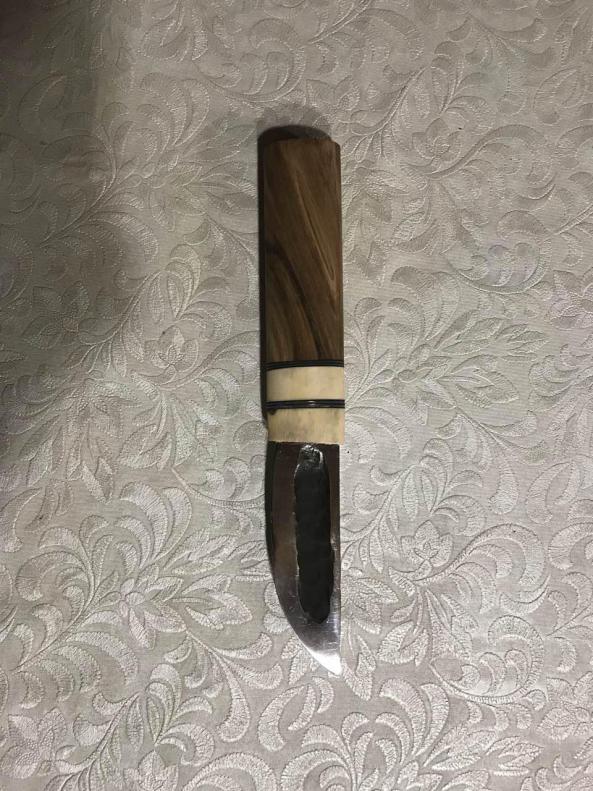 Почти доделал якутский нож. осталась полировка рога, пропитка маслом рукояти и удаление мелких царапин на клинке. потом стилистические ножны