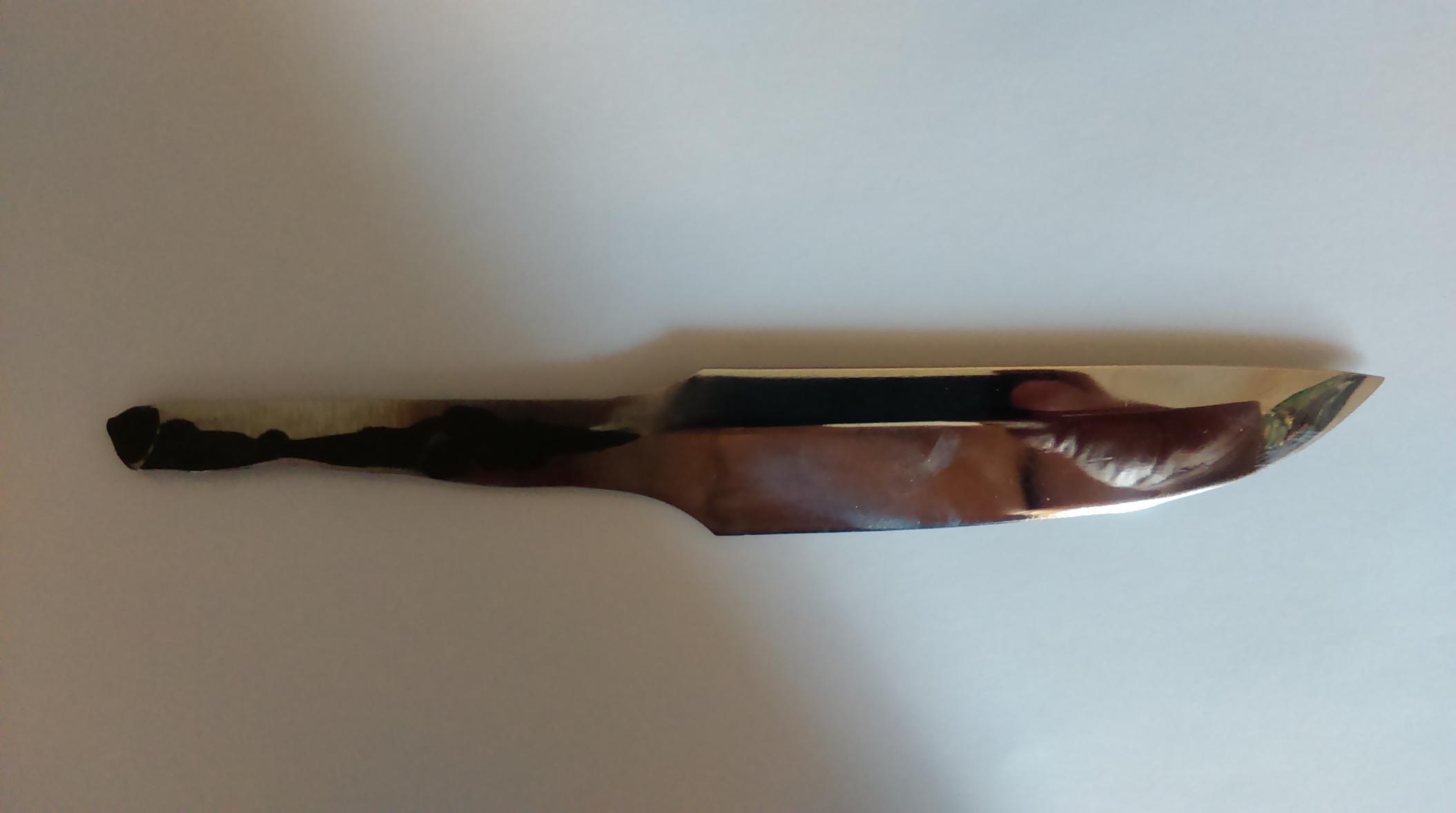 Вот клинок из Х12МФ. Пока только клинок. Планирую собрать финку ( Томми, Пукко ... ) . Сталь надёжная. Единственный недостаток - подвержена коррозии. Но при должном уходе будет служить верой и правдой долго и надёжно.