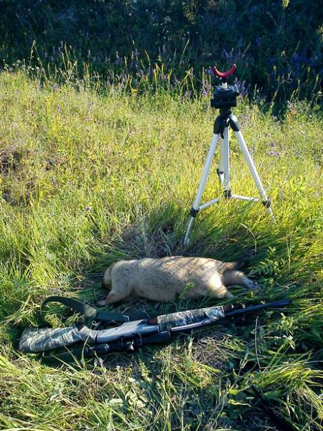 Тренога-самопал от фото штатива, с небольшой доработкой. Великолепно подошла для данной охоты...