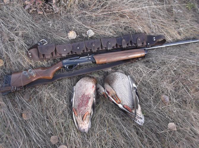Сегодня утром нашёл утиное Эльдорадо, а проще место где они прячутся. Сначала поднялась одна утка , а уж потом они взлетали из окрестных камышей минут пять , но по очереди. То две , то три , то пять. И как это бывает не на выстреле и от меня в противоположную сторону. Но вот один селезень пошёл прямо на меня. Мысленно уже добыл его. Но как в том кино-БАЦ БАЦ и мимо дважды метров с 25. Стою и обтекаю , как так то. А утки всё взлетают и взлетают с разных концов протоки. Что удивительно , это мало селезней. Примерно на пять уток один селюх. Ну вроде все улетели , а это не менее 50-60 штук. Решаю идти к машине. Прошёл метров 30 как опять вылетает пара метров за 50 и в сторону поля. А ладно , будь что будет. Один выстрел и утка пошла на посадку пролетев метров 60-70. Я бегом не отводя глаз от места приземления ломанулся туда . И уже через пару минут трофей в руках. Единственное попадание в щёку. Везение да и только. Переехал в другое место . Иду от одного болотца к другому по полевой дороге. Вижу что метров за 400-500 кружит стайка кряков штук 12-15.Один круг, другой. Я просто так взял да и покрякал в их сторону ртом через ладони сложенные рупором. И утки полетели на меня ( сам бы в такое не поверил ).Высота метров 50 .Я в чистом поле просто присел на корточки и жду. Они пролетая на домной скучились так удачно для меня . Конкретную цель не выбирал , просто вял упреждение перед всеми и один раз выстрелил. И на тебе, одна кряква выпадает из строя и камнем в кусты ивняка . Я туда. Как пробрался через сплошной сухостой веток даже и не понял. Главное ,что утку нашёл сразу. Вот такая удачная была нынче охота и выстрелы (попадания) получились за 50+.