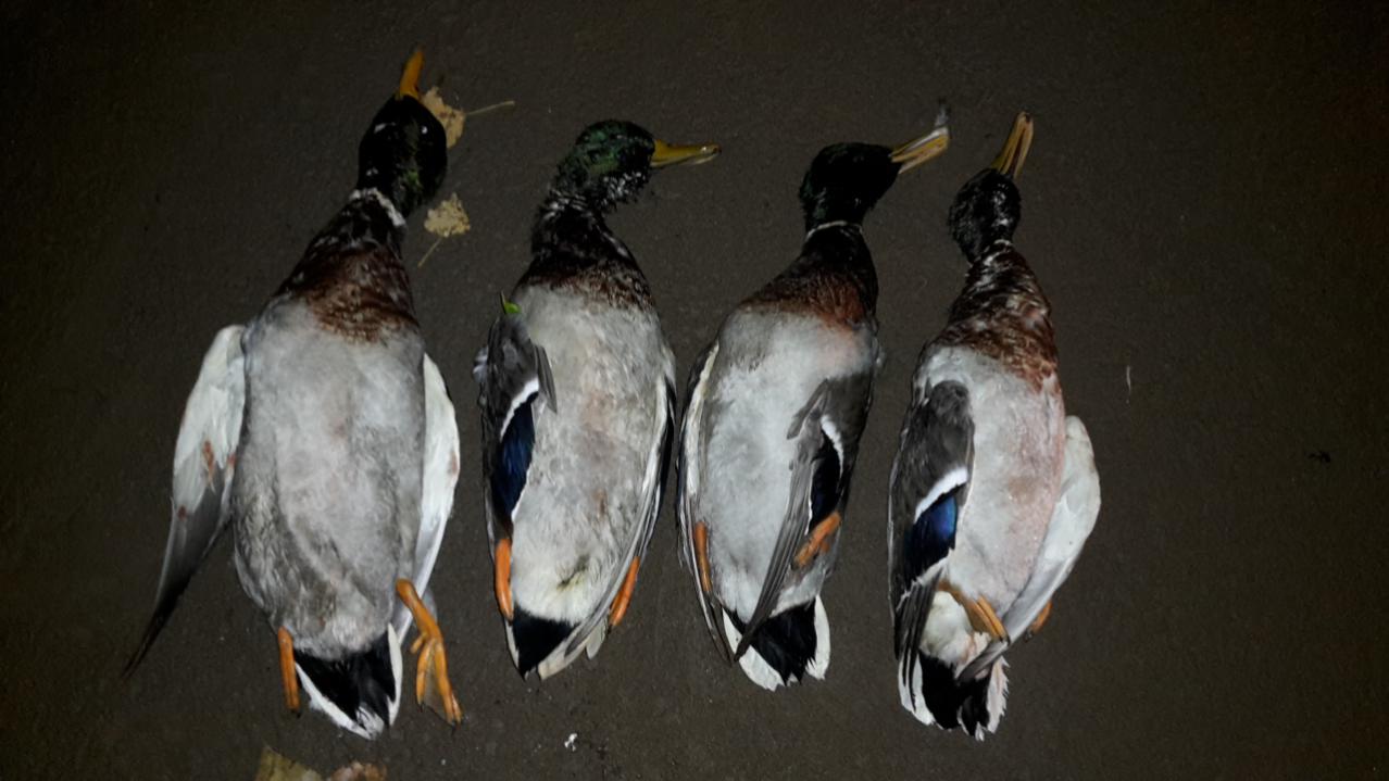 Вчера, 18.10.17 решил скататься на вечерку. К тому же накануне разыскал "утиный рай" - так я прозвал это место. Дело в том, что что бы к нему пробраться нужно пробраться через лес и кустарники. А таааам! Такое ощущение, что не ступала нога человека (трава не примята, на иле следов нет и гильзы не валяются)! И вот облюбовала это место стайка с десяток. И вот я подходу через лес. Как ни старался идти тихо, бурелом и сухие ветки, которые укрывают всю поверхность земли, предательски потрескивали под ногами. Прям из леса совершил первый выстрел по первой взлетевшей группе. За ними взлетели ещё. Прицельный выстрел с упреждением, и камнем Селезень шмякнулся на воду. Решил и на вечерку тут остаться. Крякал в манок без чучел и подстрелил ещё троих, при этом не собирал их, а они дрейфовали на воде... и утка прям к ним и стремилась подсесть, так что добытая утка была вся рядом.
