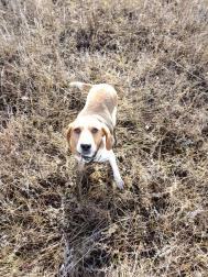 Сука, Эстонская гончая, коричневый ошейник, на вид 2-3 года.