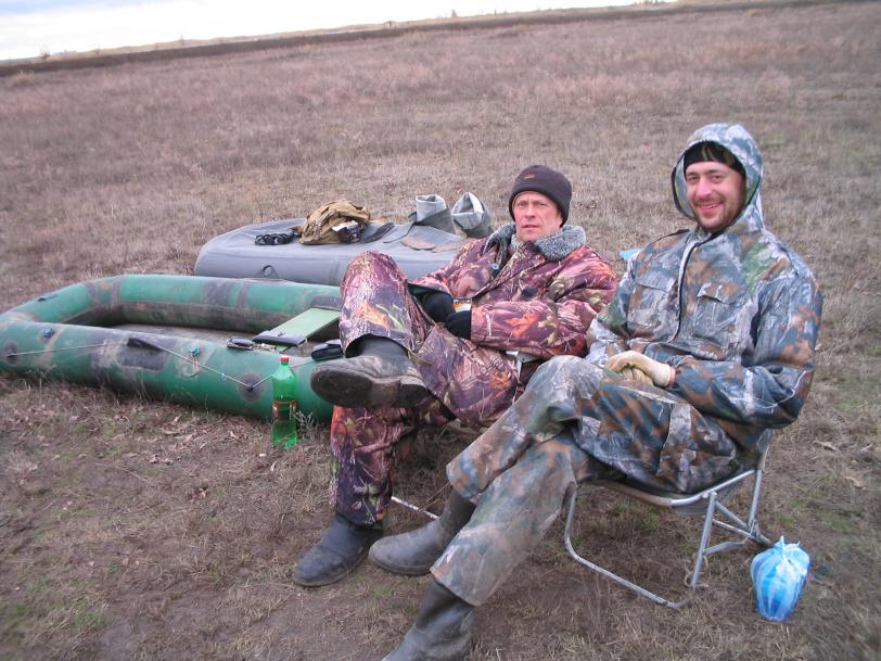 В субботу утки не было. Периодически в стороне пролетали небольшие стаи гусей, достаточно высоко. Правда один раз группа из нескольких гусей прошла низенько над расставленными профилями, но именно в этот момент все сидели вокруг костра и только пощелкали зубами.