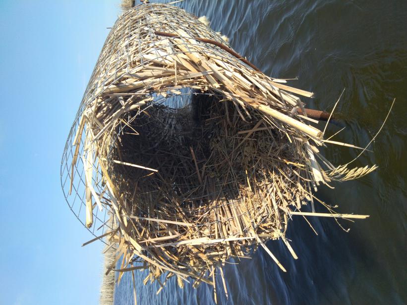 Выше на фото гнездо которое я инспектировал в ноябре и набил его камышом. Сохранилось не плохо, я даже не стал его и еще одно гнездо добивать подстилкой. Немного осадал ниже к воде так как уровень повторюсь заметно ниже прошлого года.