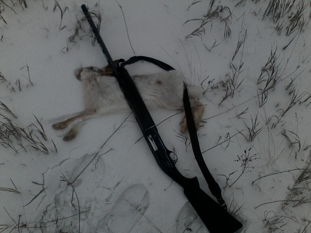 Вообщем бросили идем дальше следов все больше и больше.... напарник поднимает еще 2х... которые свалили заграницу ОУ. Тут я натыкаюсь на свежую лежку и вот подъем,на 3ем круге был взят. Идем дальше ещё подъем добыт на 2ом круге. Затем батя поднимает ещё одного...после 2х выстрелов косой лешается ноги,но бегает) ещё км 4 дал, в итоге был найден под деревцом, не понятно вроде крови не было... в итоге 2 дробины, 1 перебила ногу 2ая прошла через сердце. на рану стойкий оказался.... итог дня 9 подъемов 3 добыто!) Погода супер!!!