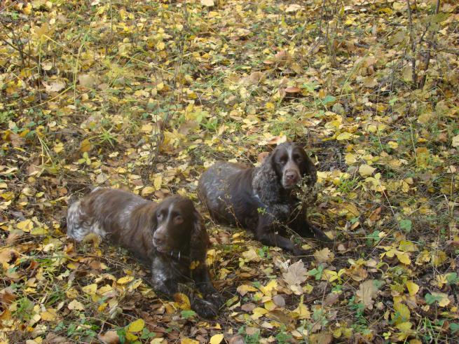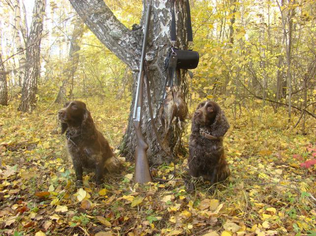 первая с Ермаком добыча! Вопрос к спаниелистам: пес подает утиные и разные крылья откуда угодно ,а утку настоящую не хочет.Что плдскажете? Песику 5 месяцев.Спасибо
