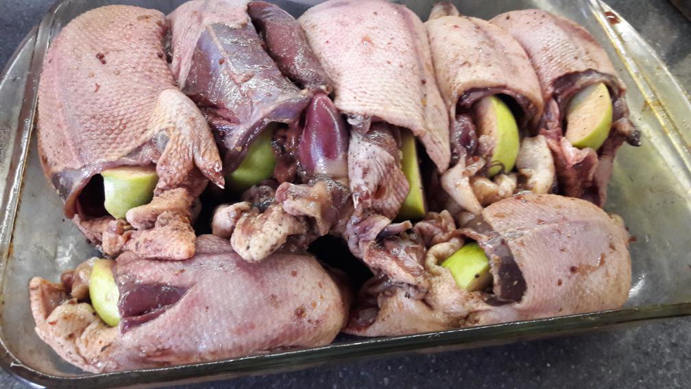 В предверии Великого Поста решил разгрузить морозилку (хотя уже вторая неделя мясопустная идет). Достал последних уточек: жирнющих ноябрьских чирочков, свияжку и широконоса. Разморозил, отмочил. Далее работала моя скво. Обмазала тущки смесью меда с горчицей и оставила мариноваться на 3-4 часа. Затем им в пузо зеленое (дубовое) яблоко дольками, в стеклянный судок, добавляем туда остатки маринада, сверху фольга и в духовку сначала на 200, а потом на 150 в сумме на часок. Затем фольга снимается и под грилем (духовочным) еще немного, чтоб зарумянились до легкой корочки, поливая жирком из судочка. Фкусно, как ипаться!!!