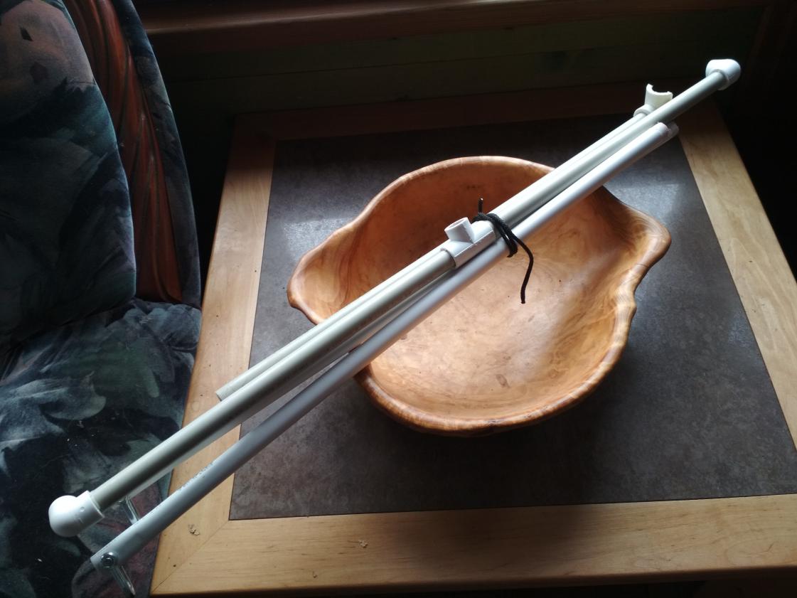![]() Разборная рамка из полипропиленовой трубы. Сеть от Али. Рамка в транспортном положении кладется на баллоны. Устанавливается в нескольких положениях, насколько фантазии хватит. Выше, ниже, спереди, сзади... Сетку пока не кроил, накинул как есть. |