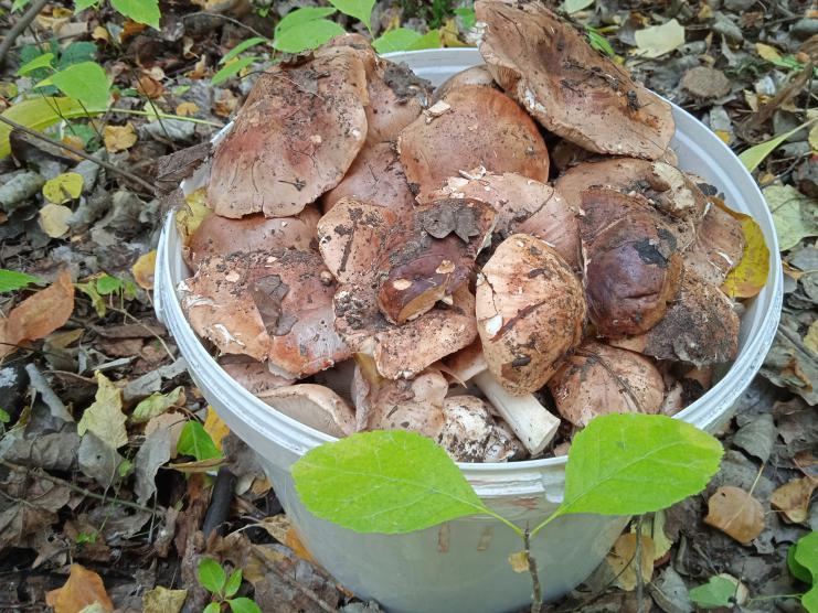 Тут вот немного, между вечерками, походил по лесу. В лесу суховато... Правда между озерными и баклушными гривками, почва благоприятная. Набрал немного, от полубелых, до подосиновиков. Опят нет. |