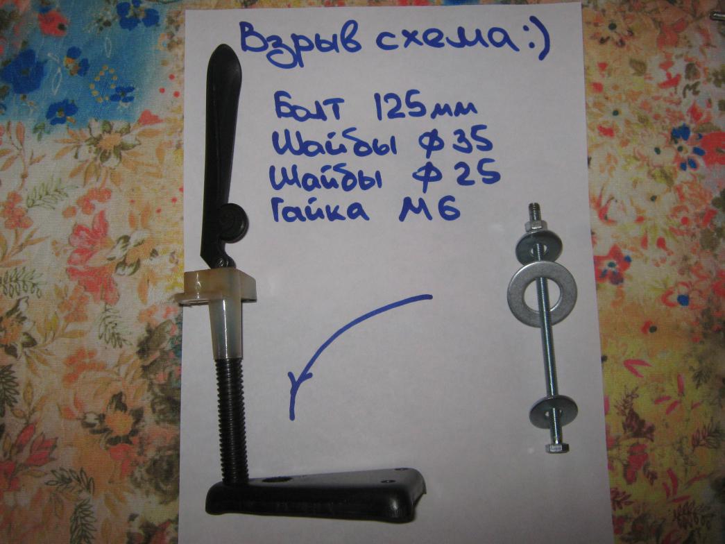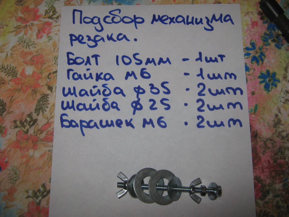 Понадобится : 1. УПС 5 -скручиваем с него все лишнее. 2. Болт 125мм с резьбой М6. 3. Болт 105мм с резьбой М6. 4. Гайки 3шт резьба М6. 5. Барашки 2шт резьба М6. 6. Шайбы 3шт наруж диам35. 7. Шайбы 4шт наруж диам 25,внутр диам 8. 8. Болты с гайками 3шт под М5 и длиной 25( можно и покороче) 9. Монтажная хрень ( незнаю как называется) 1шт. 10. Лезвия от канцелярского ножа. 11. кусок изоленты ( для соблюдения ТБ). Трубка дл100мм диам 13.Пара кусков гибкого шланга,для плотной посадки гильзы(думаю можно применить изоленту- будет даже лучше). Все это было куплено в строй магазине (кроме УПС конечно)) и обошлось в 84 рубля. Последний раз редактировалось кефир; 17.09.2013 в 11:14. |