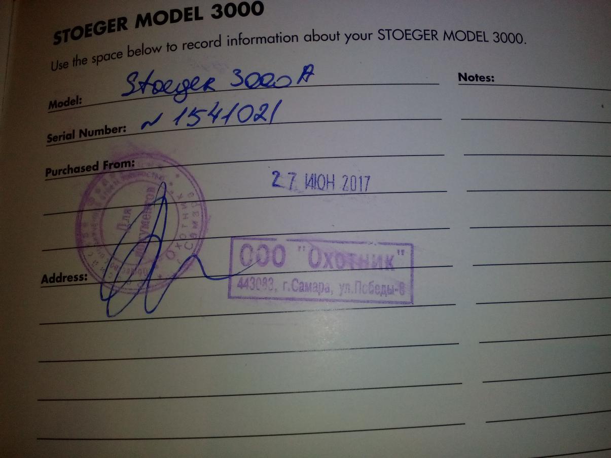 Доброго времени суток! К Oxotnik63: в июне прошлого года в Вашем магазине было приобретено ружьё Stoeger M3000: