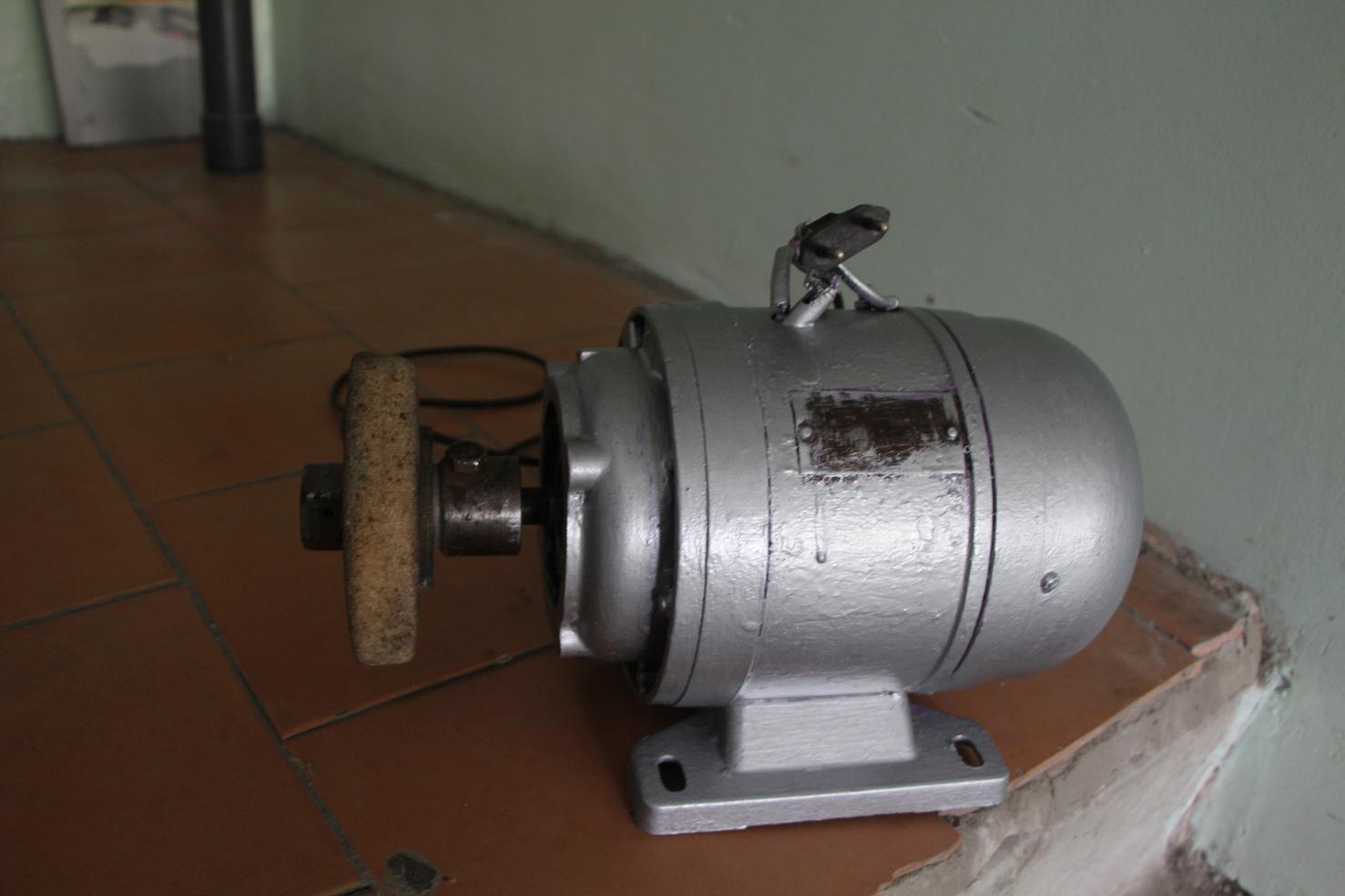 5. Электродвигатель 380/220В. (на данный момент подключены на 220В.), 1430 об/мин, 0,5 кВт. Запускается легким вращением руки. Стоимость 950р. с насадкой и точильным кругом 1250р.