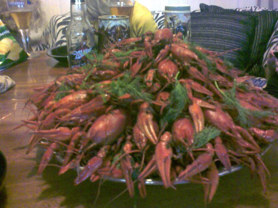 Кстати с пивом раков не очень, хотя ем. А вот рюмку водки, теплым, почти горячим раком закусить!!!