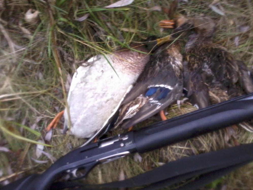 В субботу по светлому много утки моталось. Стаи голов по 10-20, но очень высоко и на чучела и манок ноль внимания. На вечерке лет был слабый. У меня всего 2 налета метров за 40-50, оба смазал. Зато товарищ взял двух кряковых красавцев зеленоголовых.