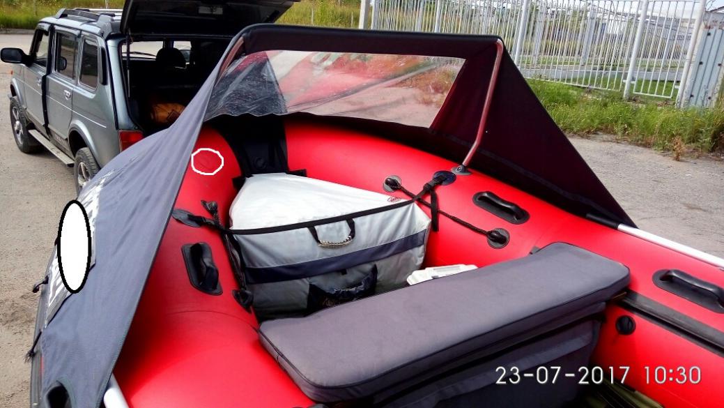 Полы, морская фанера. Выпуск лодки - 04.2015, покупка - 08.2015, спуск на воду - 05.2016, общее время на воде - 27 м/часов. Комплектация всё, что идёт по паспорту + Носовой тент, носовая сумка, дополнительные широкие банки с мягкими накладками, коврик, БРОНЬ ВСЕГО ДНИЩА !!!. Есть одна латка, в носу, внутри, на фото обведено белым кружком. Состояние отличное. Цена: 78000. Причина продажи - переход на пластик.