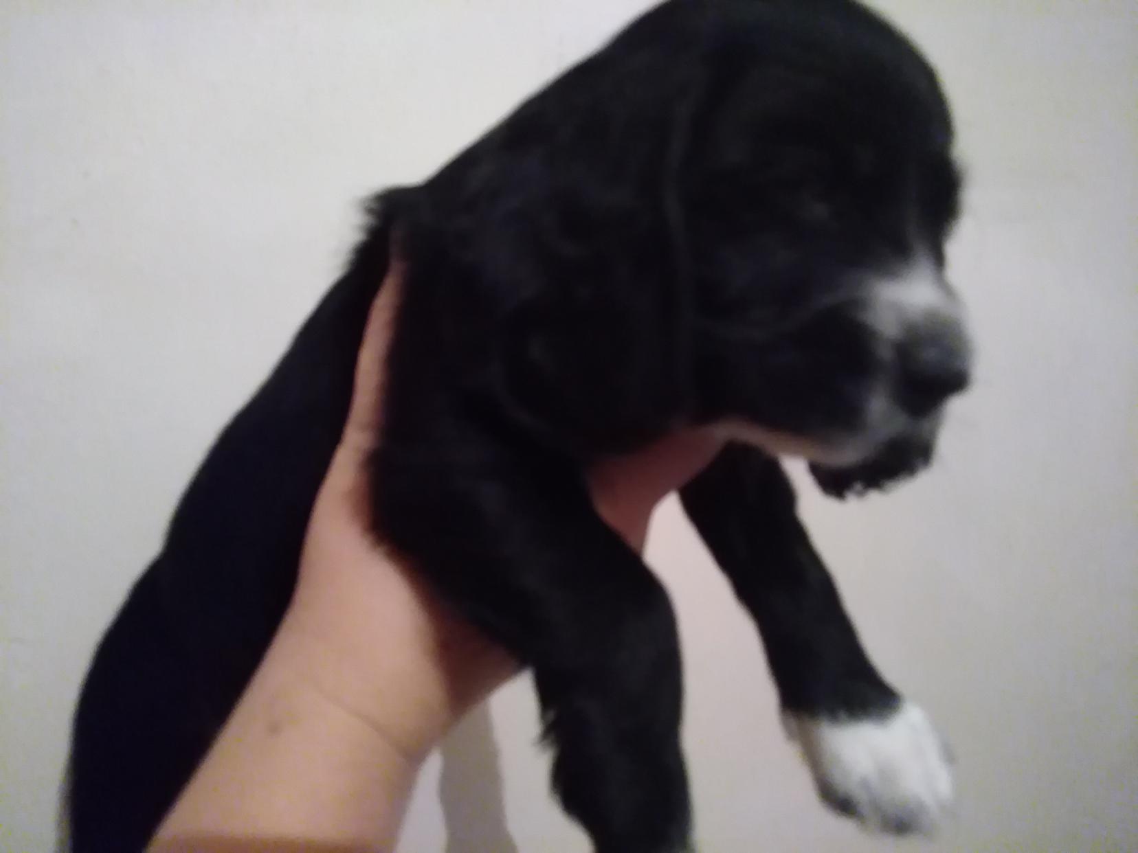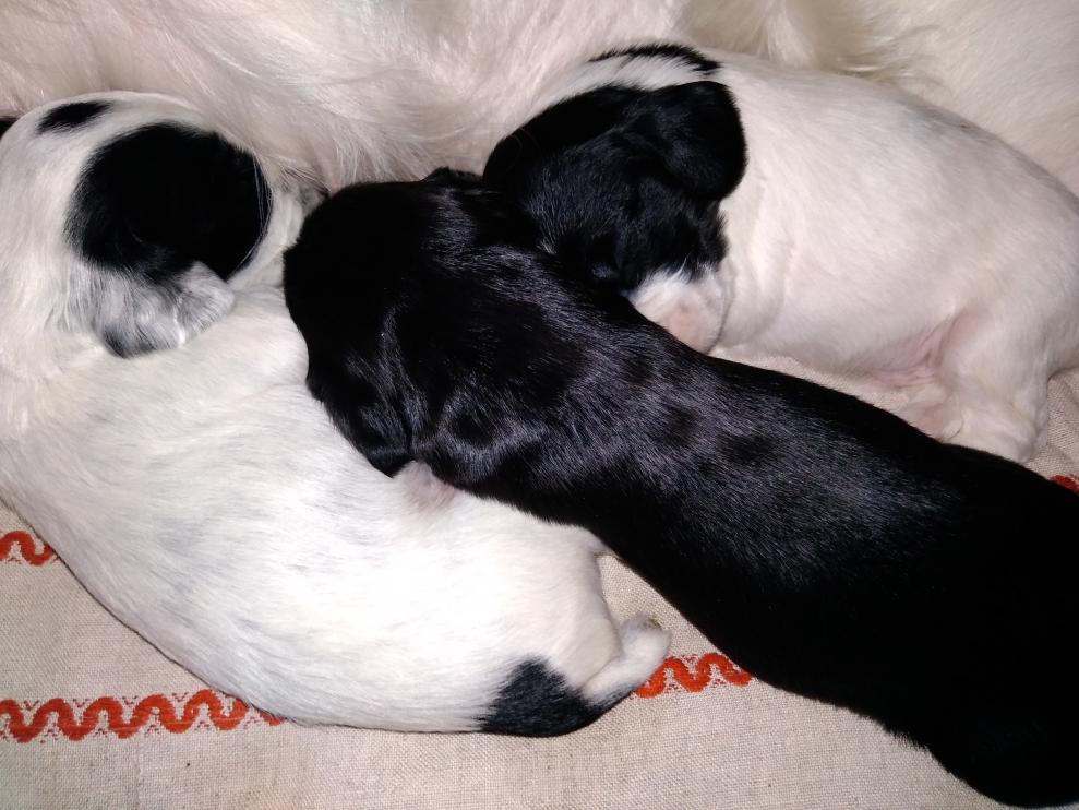 9 щенков: 6 кобелей (2 черно-пегих и 4 черных)/3 суки (черно-пегая и 2 черных)