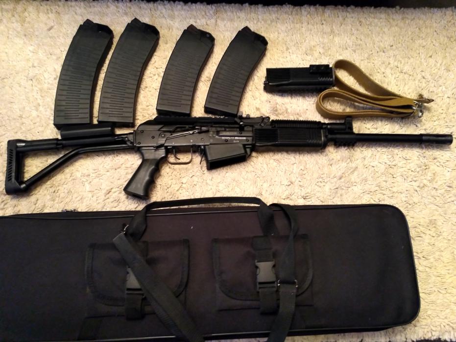 ВПО-205-00 2014 года, состояние нового, единственный владелец. Настрел минимальный, в пределах 100 - 150(прошел обкатку), ест навеску 28 грамм без клинов. Комплект: 2 штатных магазина по 8, +2 магазина по 10, дополнительное цевье без планки, чехол - переноска, ремень АК. Территориально Самара. 38000 руб. Возможна продажа без допов, с двумя штатными магазинами на 8, за 34000 рублей. +79879834230