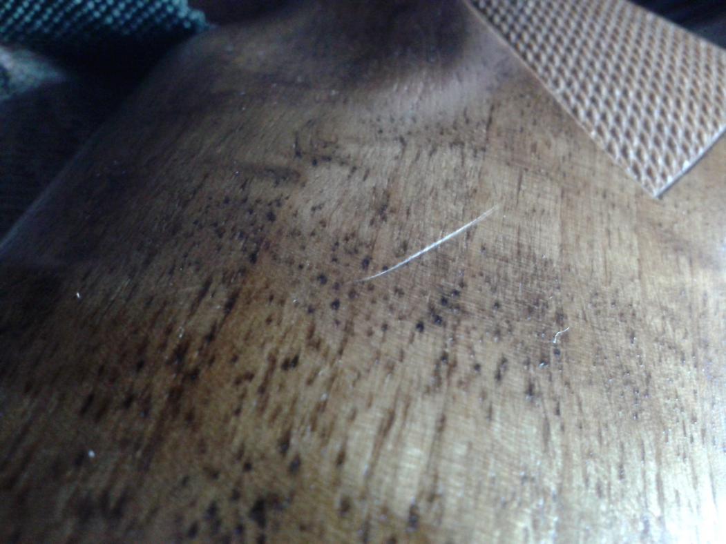 чуть что то как серпом. но когда есть 1 коцка и потом 3 уже проще. в идеале трудно сохранить, если только все не замотать. а то трясешься над ней как над хрусталем, так не поставь тут не положи. с каждой царапкой привыкаешь.у мр 153 орех, она 2008 г. простенький орешек, был в отличном состоянии. но оливой пропитал, появился рисунок стал темнее приятнее
