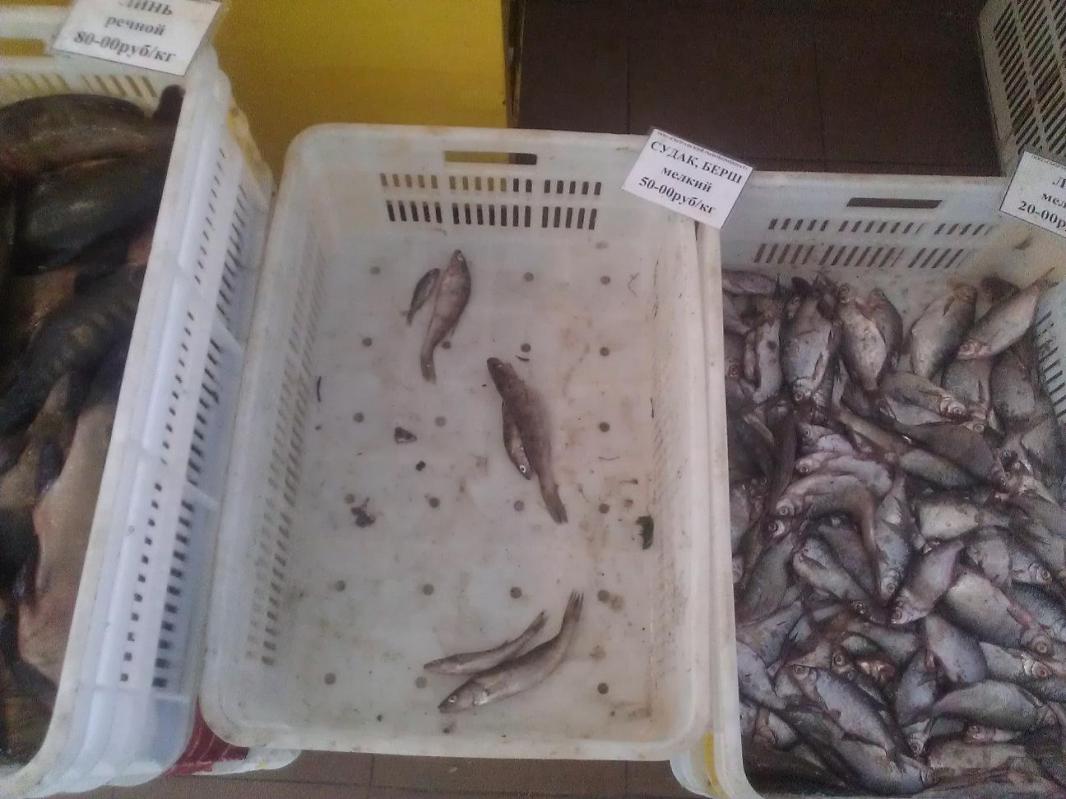 кстати в ящике справа "лещ мелкий" - размер с ладошку, дербанят и его тоже - 20 р кило ((
