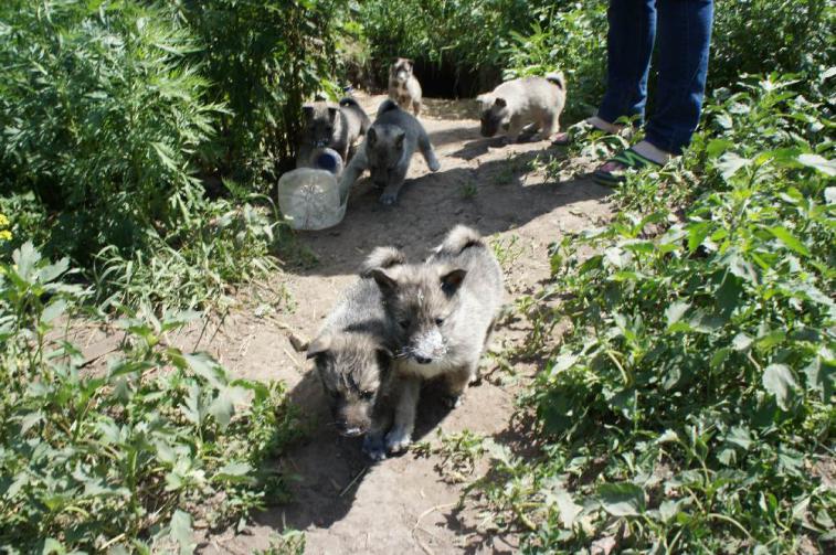 Ну и немного (пока) щенки, неуверенно, но передвигаються.