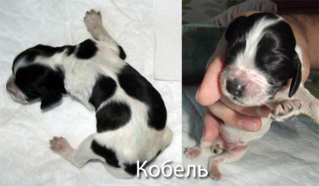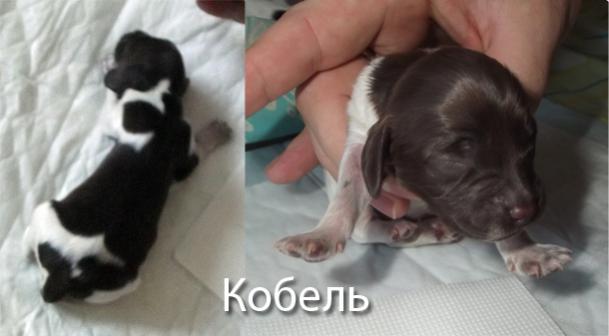 5 кобелей /3 коричнево- пегие и 2 черно-пегие/ и 7 сук /черно-пегие/.