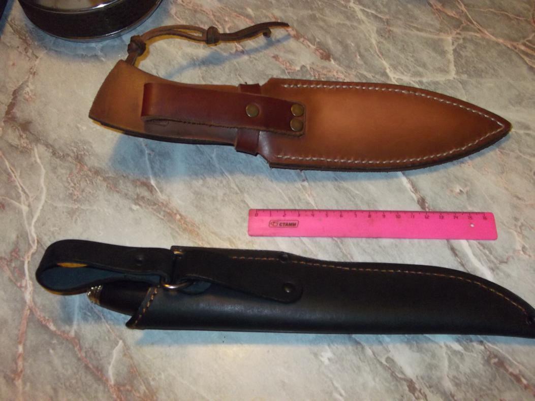 1.Предлагаю вашему вниманию вариант боевого ножа «Каратель» в исполнении без гарды с клинком из кованой углеродистой пружинно- рессорной стали 65Г. Подобные ножи "Каратель" и "Взмах" используются спецподразделениями МВД и ФСБ для работы в тяжелых условиях. Антибликовое покрытие клинка (оксидирование), заточка низ и верхняя передняя часть. Сталь 65Г применяется для изготовления пружин, рессор, корпусов подшипников и обладает достаточно высокой жесткостью и способностью долго сохранять заточку. Исполнение рукояти - комбинация черного граба, гарда латунь. Соединение клинка и рукояти- шпилька диаметром 8 мм до конца рукояти. Этот нож является сделанным вручную высококачественным изделием, которое может украсить любую коллекцию, и может использоваться для охоты, туризма, рыбалки, походов по местам сражений! Made in VORSMA. Не стоит сравнивать этот качественный нож с китайскими «аналогами» из чугуна, покрытыми укрепляющим напылением! Цена пусть-4.500 руб. Характеристики ножа: Сталь пружинно-рессорная 65Г. Общая длина 289 мм Длина клинка 165 мм Ширина клинка 35 мм Толщина клинка 5,8 мм Твердость клинка (HRC) 60-61 ед. Рукоять: латунь, черный граб. Ножны от мастерской "Романа Серкова" 2.Охотничий нож «Шерхан» дамаск. Ручная работа! Черный граб, латунь, герб РФ! Новый охотничий нож «Шерхан» с клинком из кованой дамасской стали.Дамаск имеет великолепные режущие свойства. Рисунок дамаска – «крученый». Кузнец Новоселов. На клинке имеется клеймо. Элементы рукояти выполнены методом литья из латуни, задняя часть - герб России, дерево- черный граб. Соединение клинка и рукояти – шпилька диаметром 8 мм до конца рукояти. Сделано в г. Ворсма, полностью ручная ковка и работа. Ножны из натуральной кожи с тиснением в комплекте.Цена пусть-4.000 руб. Характеристики ножа: Сталь дамасская, пакет ШХ15+ХВГ+У8. Общая длина 270 мм Длина клинка 148 мм Ширина клинка 35 мм Толщина клинка 3,4 мм Твердость клинка (HRC) 59-60 ед. Рукоять: литье латунь, черный граб. Прошу звонить по тел.+семь 927 205 шесть 118 Сергей. Если не беру или сбрасываю-перезвоню сам (не всегда есть возможность разговаривать). Спасибо за понимание. На форуме после 20-00.Но лучше звоните.